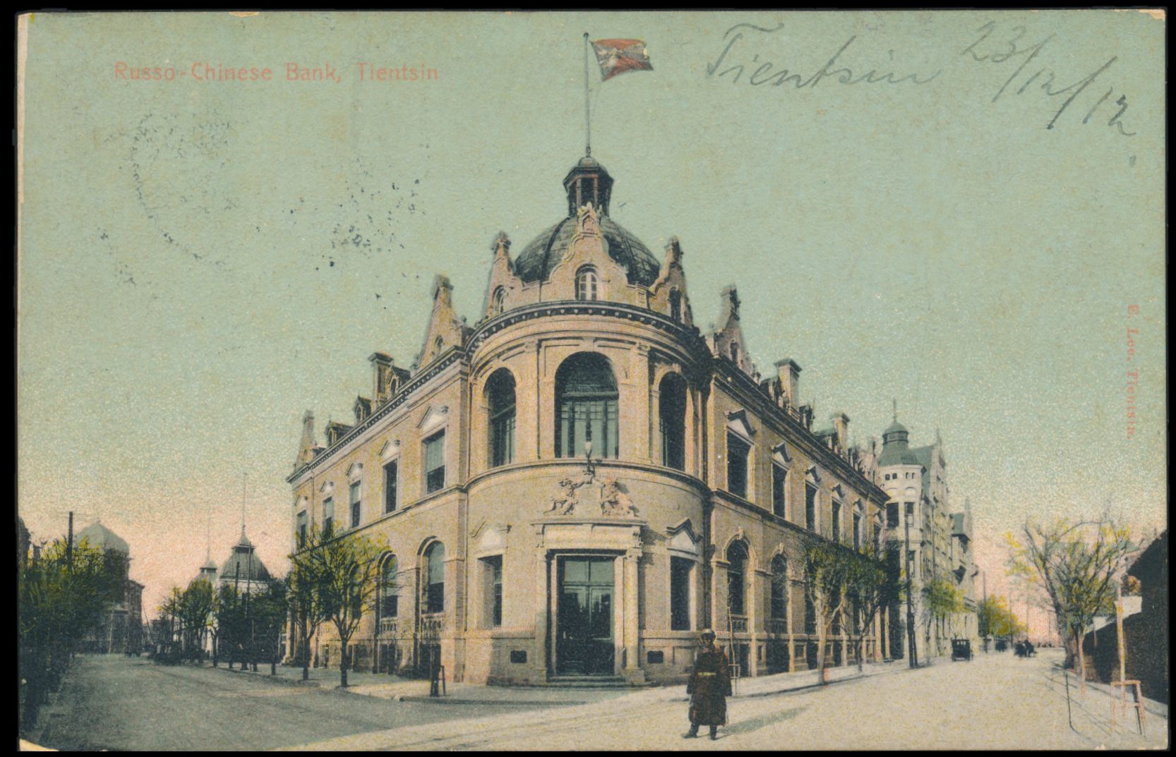 Ansichtskarte Tientsin - Russo-Chinese Bank, Frankatur Deutsche Post 2 C., Stempel Tientsin / Deutsche Post b 23.12.12, nach Shanghai, Bedarf